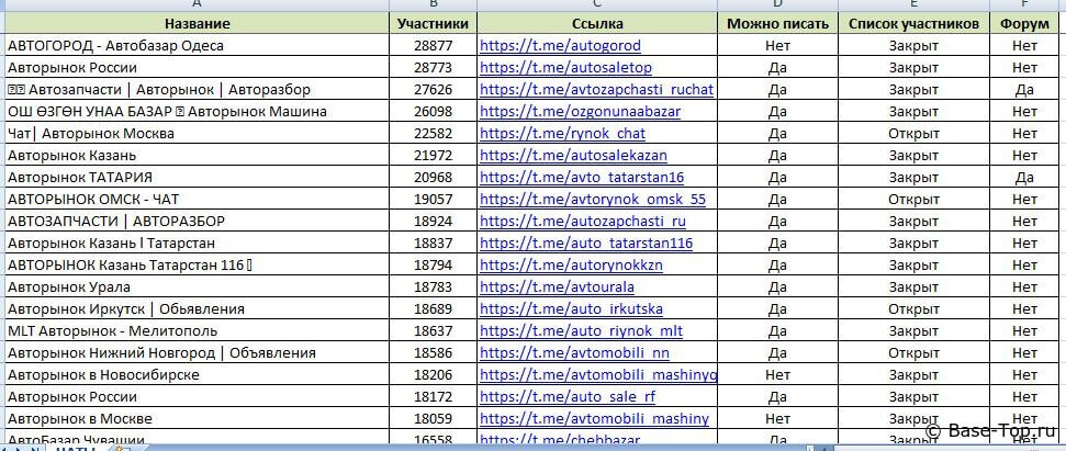 Каналы и чаты Telegram - Автозапчасти (2500 шт)