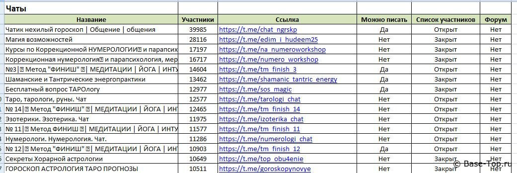 - Тип (канал или группа). Раздельно в двух файлах.