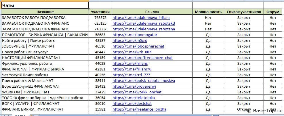 Каналы и чаты Telegram - Фриланс, Удаленка (3000 шт)