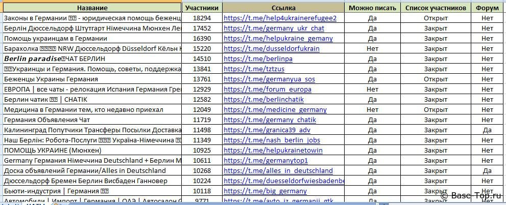 7 0База каналов и чатов Telegram по стране "Германия". Помощь с жильём, туризм, чаты по городам, изучение языка, развлечения, иммиграция, помощь беженцам, поставщики, трудоустройство, бизнес, объявления и барахолки, сообщества по интересам и другое.