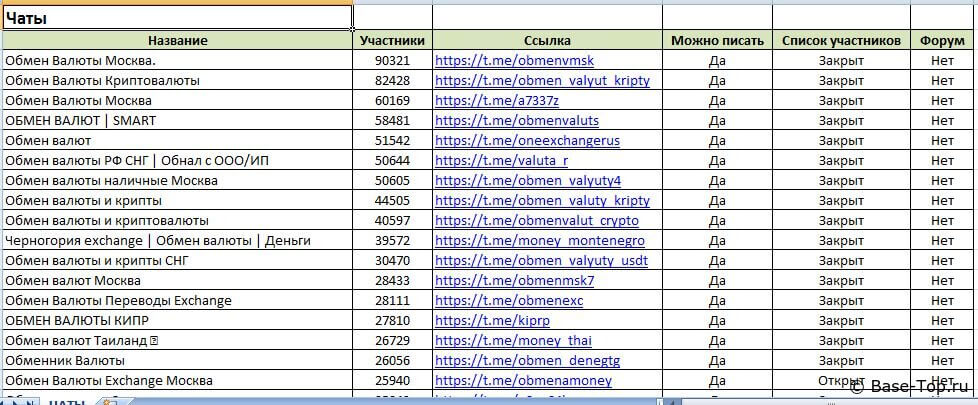 Количество каналов + чатов Телеграм в базе: 500 000+ шт.