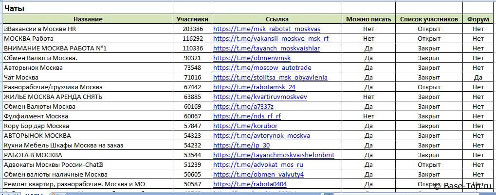 Каналы и чаты Telegram - Москва (50 000 шт)