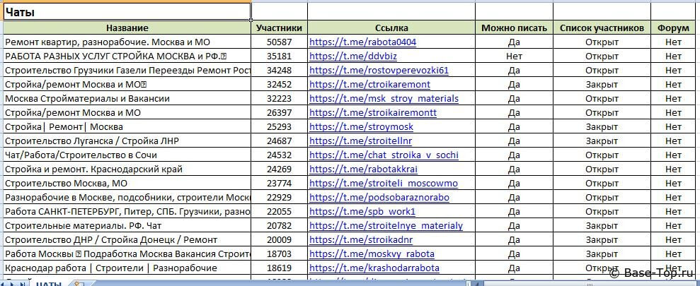 Каналы и чаты Telegram - Строительство и Ремонт (6500 шт)