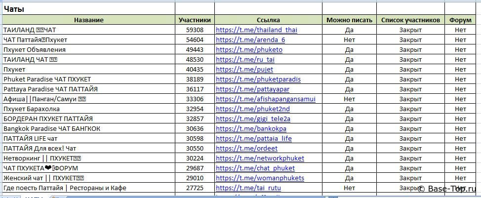 Каналы и чаты Telegram - Тайланд (2400 шт)