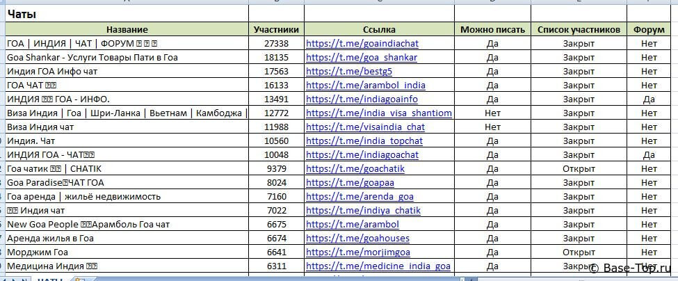 Каналы и чаты Telegram - Индия, Гоа (700 шт)