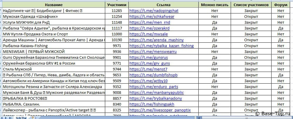 - Тип (канал или группа). Раздельно в двух файлах.