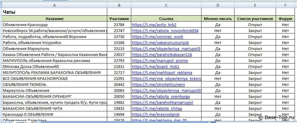 Каналы и чаты Telegram - Доски Объявлений (9000 шт)