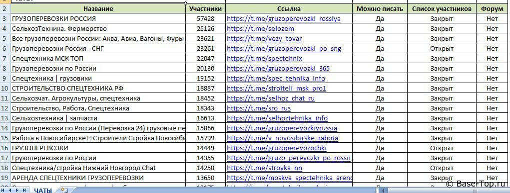 Каналы и чаты Telegram - Спецтехника (2500 шт)