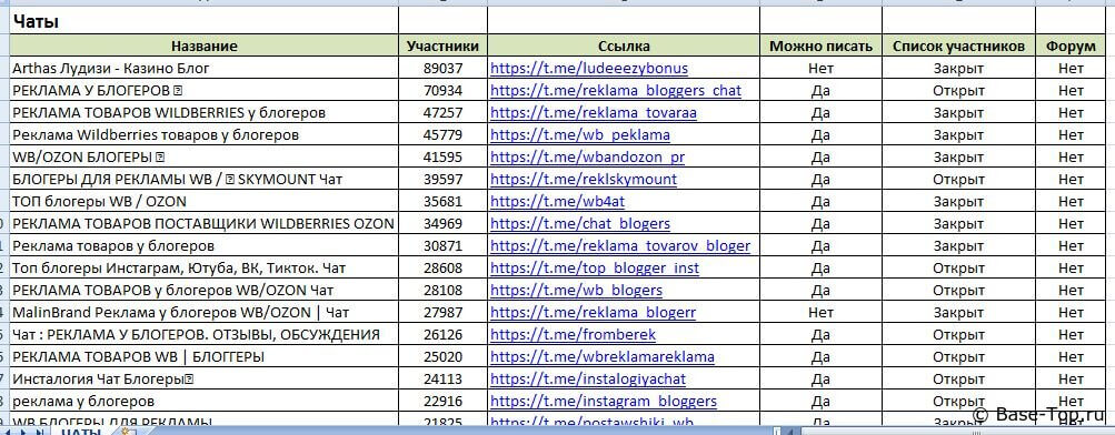 Каналы и чаты Telegram - Блогеры (5000 шт)